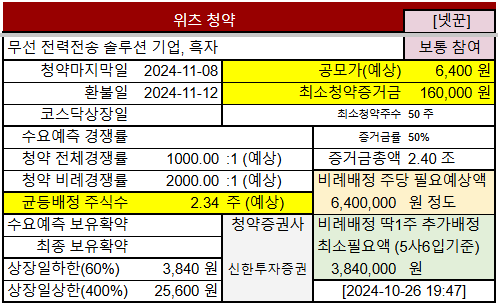 2024-09-12 ChosunBiz: ‘무선충전 설루션社’ 위츠, 증권신고서 제출… 11월 상장 목표