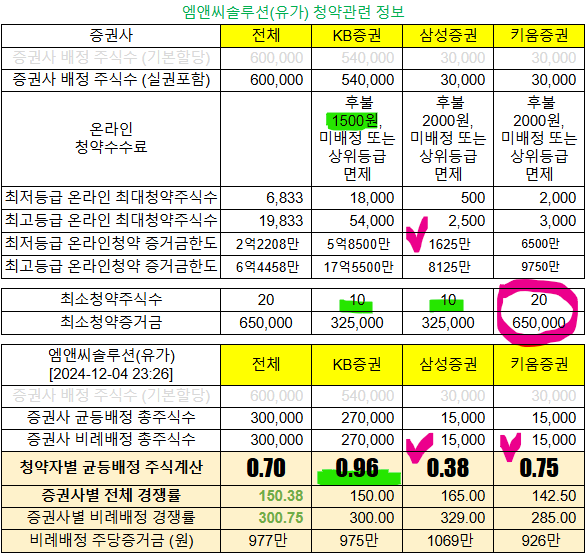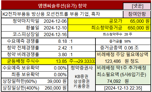 2024-12-03 THE STOCK: 엠앤씨솔루션, 흥행 실패...하단 미만가 강행?