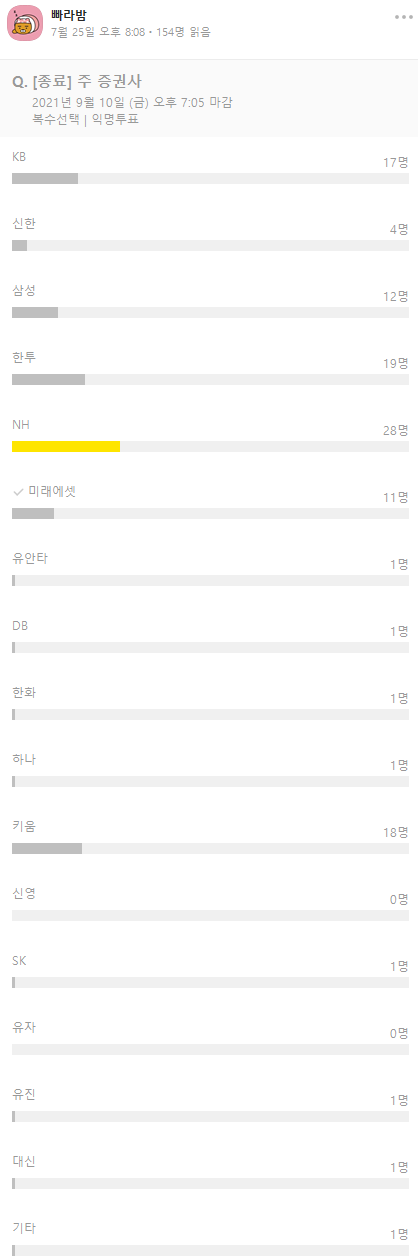 2021년7월25일기준 주로 사용하는 증권사