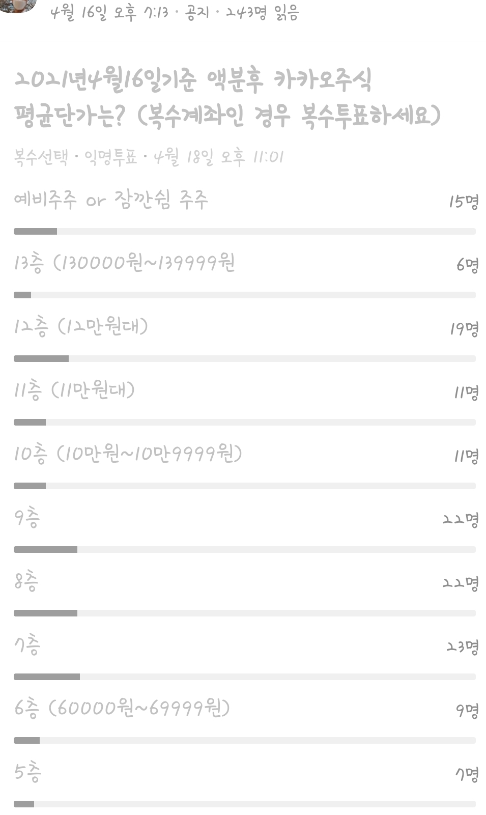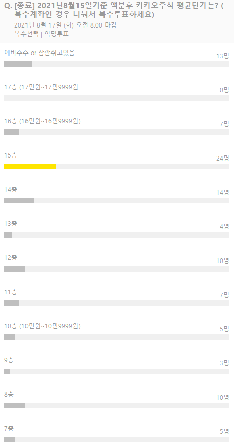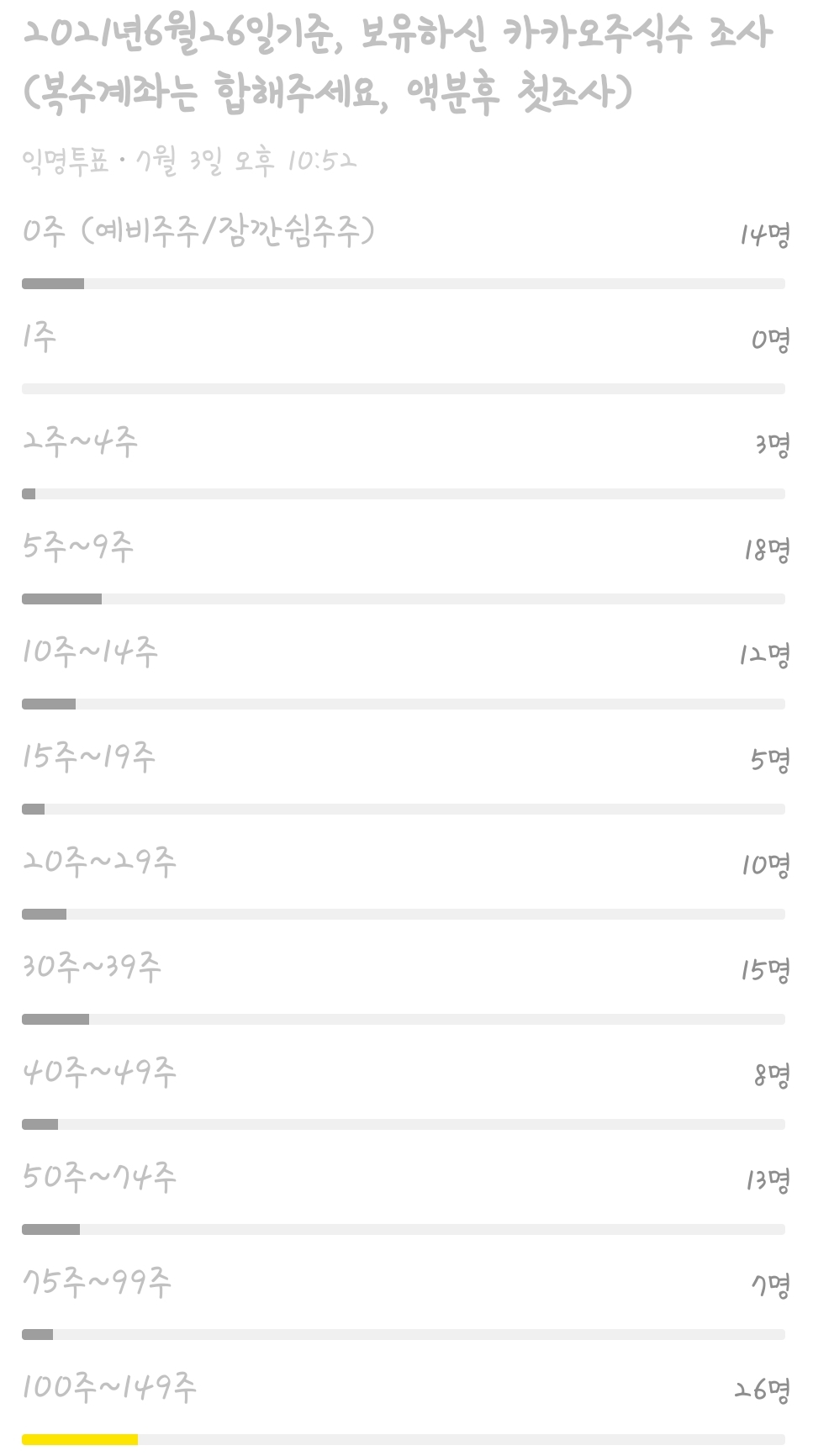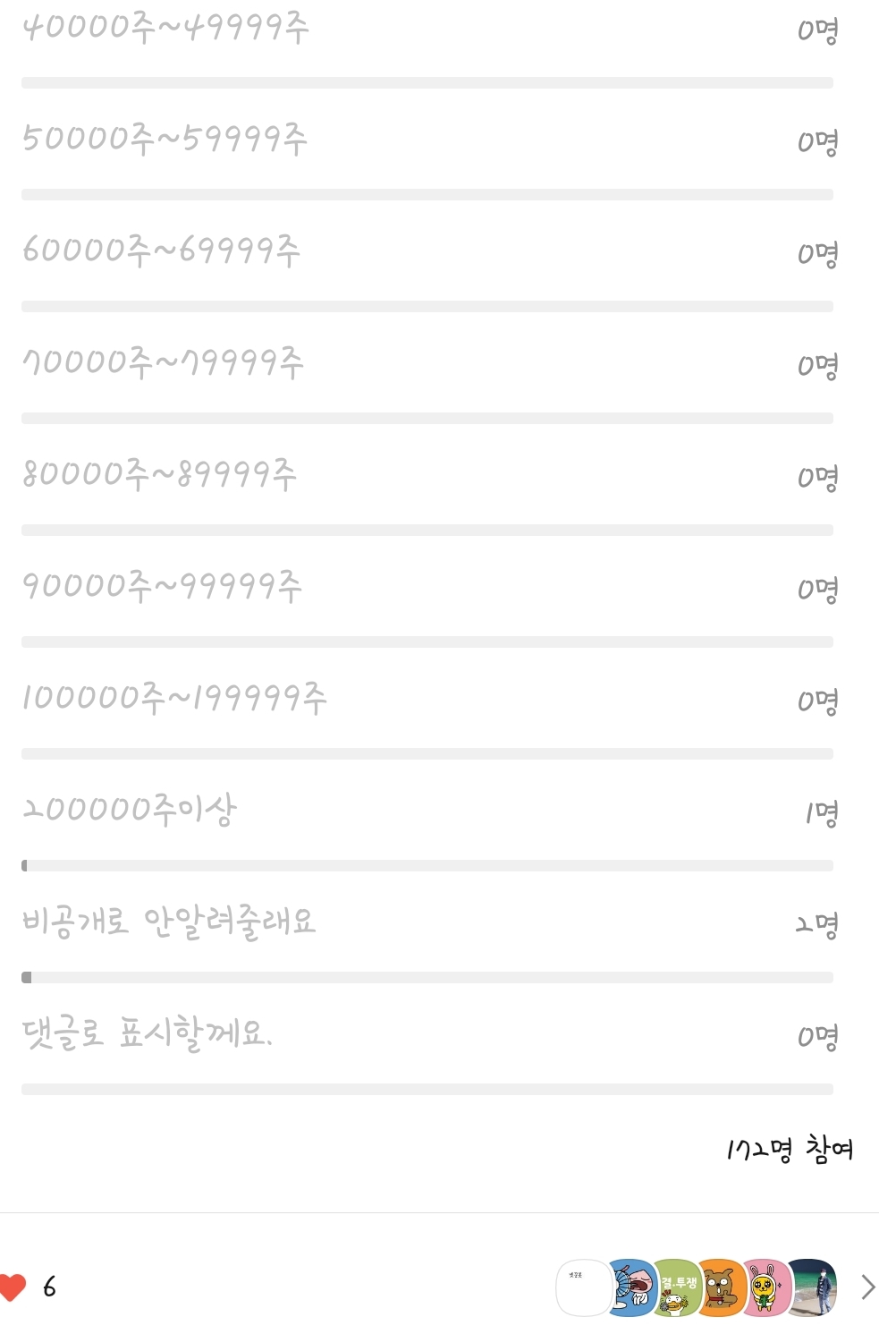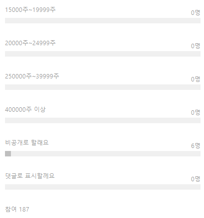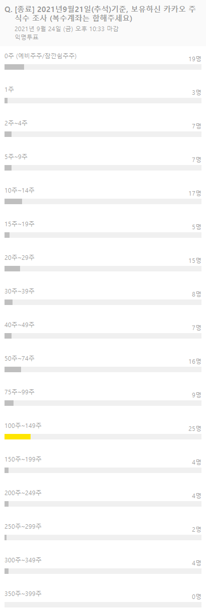 (20만주부터 범위적을때 오타가 있었으나 큰 차이는 없을 듯 보입니다. 40만주이상에 투표하신 분 1분 있었는데 변경하셨네요.)