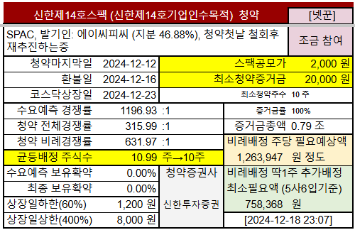 | 신한제14호스팩 | 12.11~ 12.12목 |