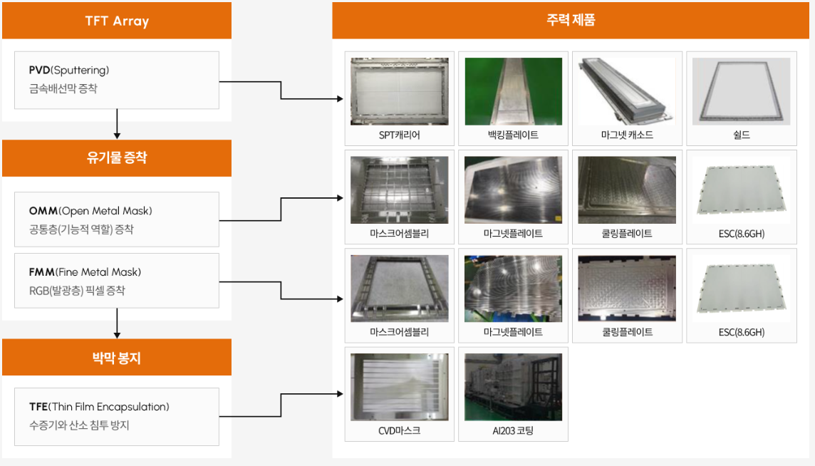 OLED 관련해서는 2025 대한민국 가전대상 OLED 부품 부문에서 영예의 대상을 차지할 정도로 기술력이 있으며, 습식 고성능 탈철기뿐 아니라 건식 고성능 탈철기 기술도 확보, 앞으로 배터리 재료 및 공정 변경에 빠르게 대응할 것이고, 반도체 진공 설비 부품 국산화와 패키지 공장 물류 자동 시스템 구축을 위한 핵심 특허를 확보했다고 합니다.