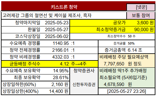 고려제강 오너일가가 소유한 절연선 및 케이블 제조사 #키스트론 공모주청약 정보입니다.
