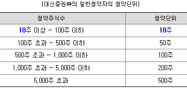 최소청약 증거금 |