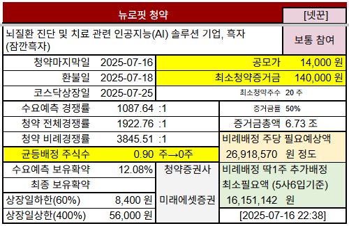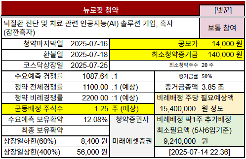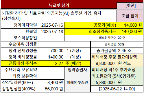 #공모주청약 #경쟁률 #공모가 #청약일정 #넷꾼 #기관수요예측 #기관보유확약 #상장관련주 #뉴로핏