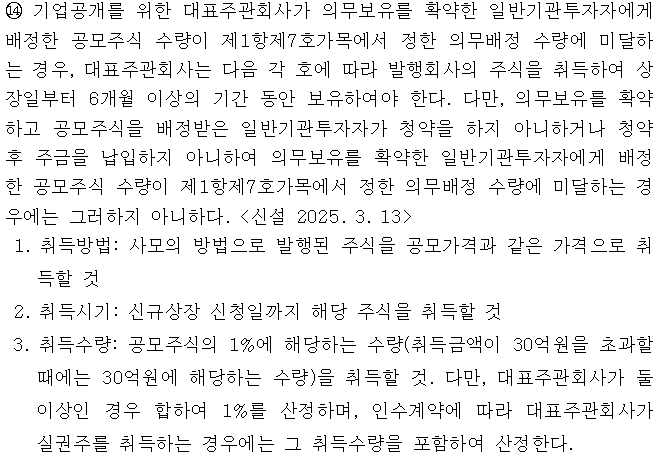 스팩의 경우엔 보유확약이 매번 0%였는데 어떻게 하든 이 룰을 피하긴 어려워보이네요. (예외를 따로 두지는 않은걸로 보입니다.)