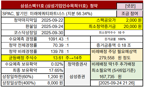 | 삼성스팩11호 | 9.19~ 9.22월 |