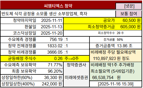 #공모주청약 #경쟁률 #공모가 #청약일정 #넷꾼 #기관수요예측 #기관보유확약 #상장관련주 #씨엠티엑스