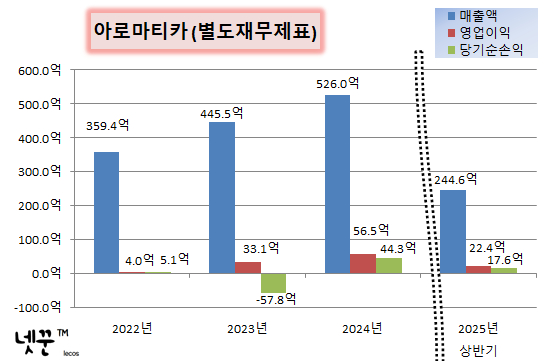| 매출액 | 244.6억 | 526.0억 | 445.5억 | 359.4억 |