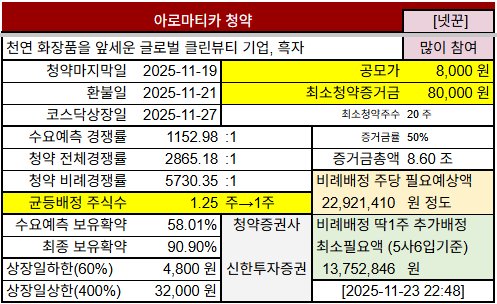 #공모주청약 #경쟁률 #공모가 #청약일정 #넷꾼 #기관수요예측 #기관보유확약 #상장관련주 #아로마티카 #AROMATICA