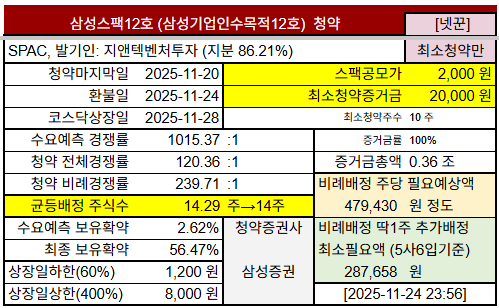 | 삼성스팩12호 | 11.19~ 11.20목 |