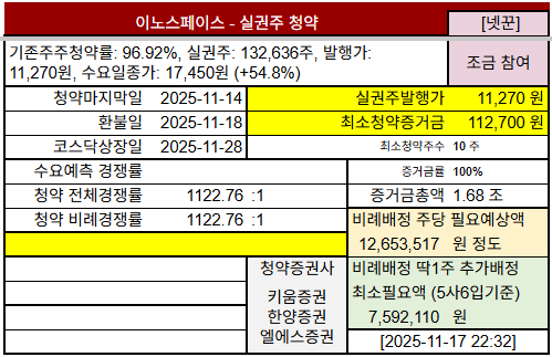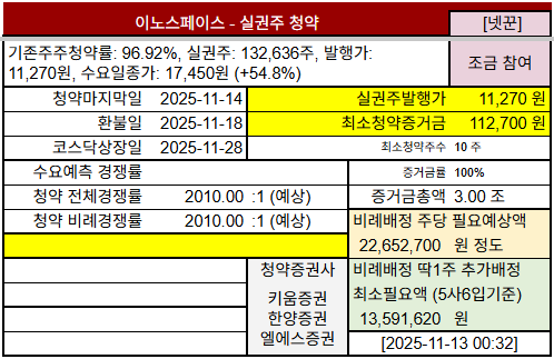 | 이노스페이스 - 실권주 | 11.13~ 11.14금 |