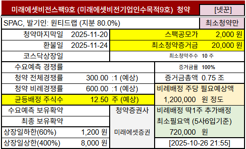 | 미래에셋비전스팩9호 | 11.19~ 11.20목 |