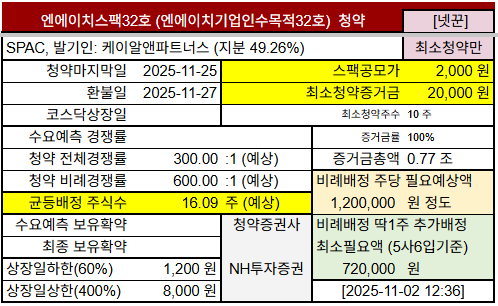 | 엔에이치스팩32호 | 11.24~ 11.25화 |