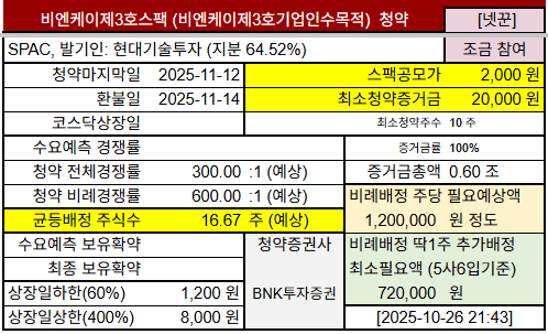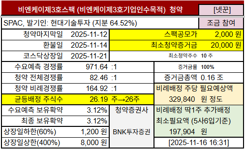| 비엔케이제3호스팩 | 11.11~ 11.12수 |