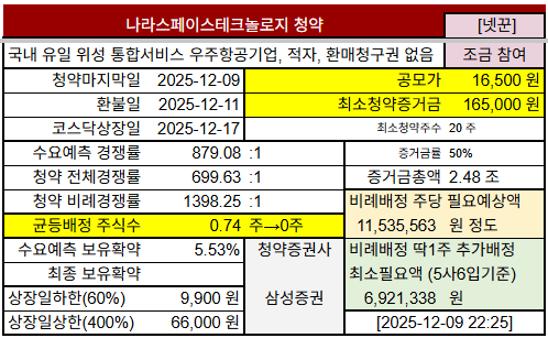 #공모주청약 #경쟁률 #공모가 #청약일정 #넷꾼 #기관수요예측 #기관보유확약 #상장관련주 #나라스페이스테크놀로지 #나라스페이스