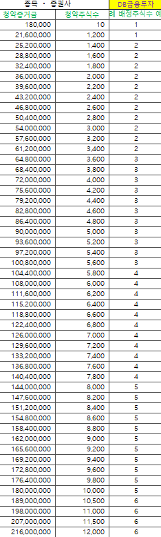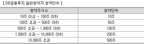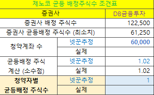 | 증권사 | 배정주식수 | 청약한도 | 구분 |