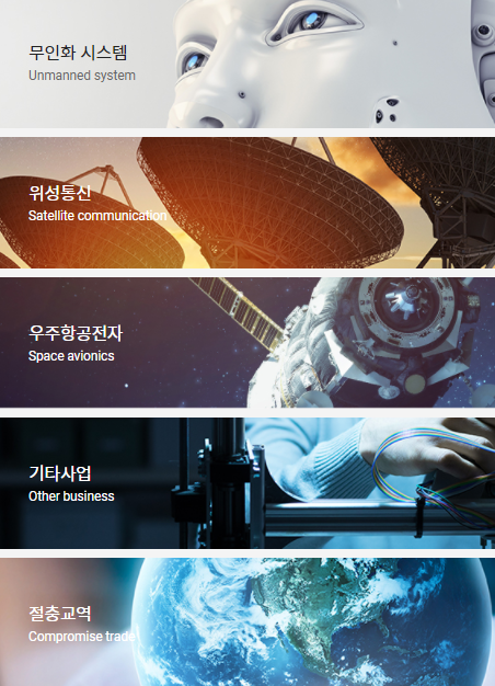 위성통신 시스템을 설계하고 구축, 설치 및 유지 보수 서비스를 제공한다. 또한 무인화 시스템과 우주항공전자 등의 사업도 진행 중이다. 더불어 수중탐색용 자율무인잠수정의 제어 장치 등을 개발하는 등 무인화 시스템도 생산한다.