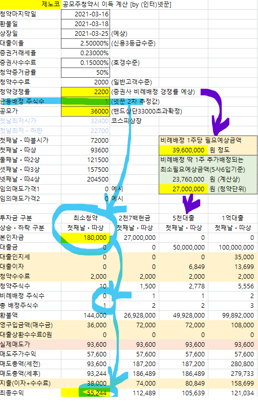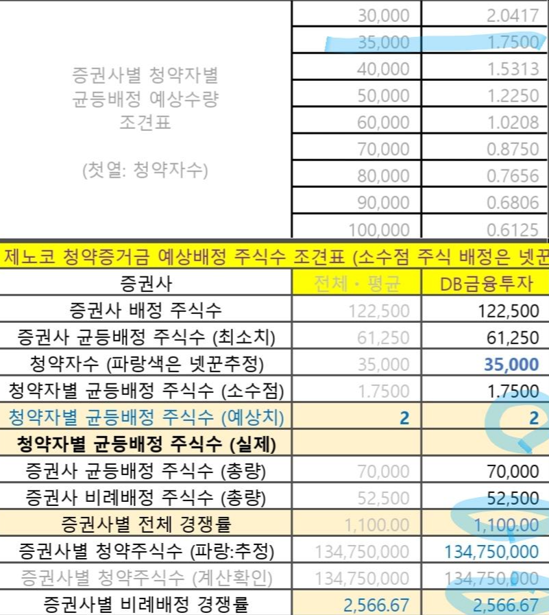 청약증거금 2조8천억 가정, 전체경쟁률 1100:1 가정, 비례배정 경쟁률 2567:1 정도됨.
