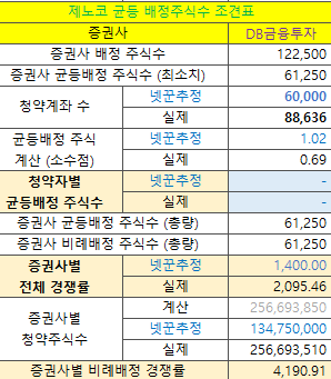 | DB금융투자 | 122,500주 | 12,000주 (우대동일) | 대표주관사 (단독) |