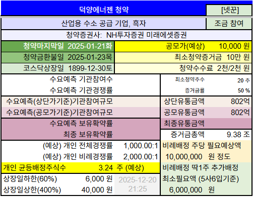 #덕양에너젠 #공모주청약 #경쟁률 #공모가 #청약일정 #넷꾼 #기관수요예측 #기관보유확약 #상장관련주