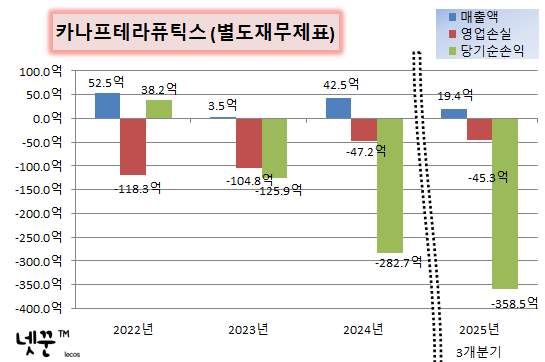 | 당기순손익 | -358.5억 | -282.7억 | -125.9억 | 38.2억 |