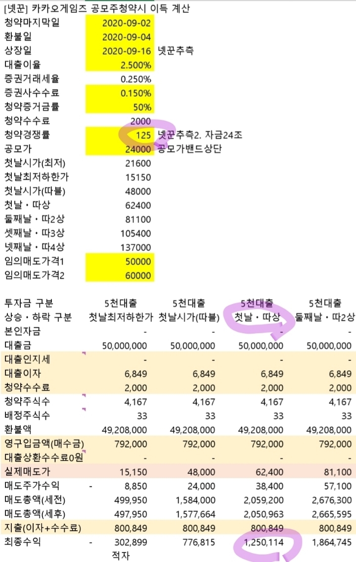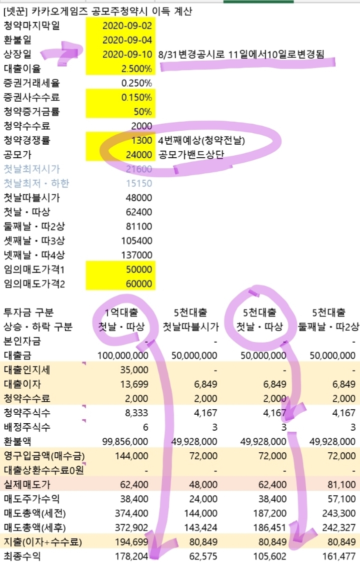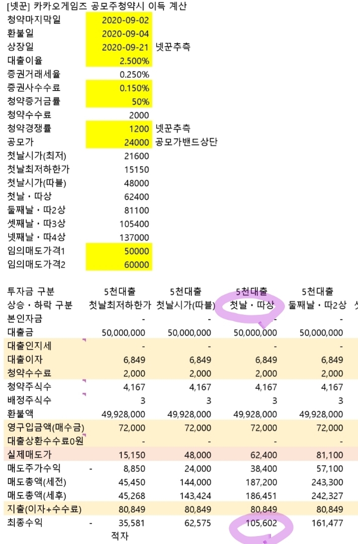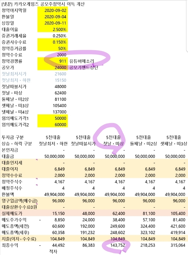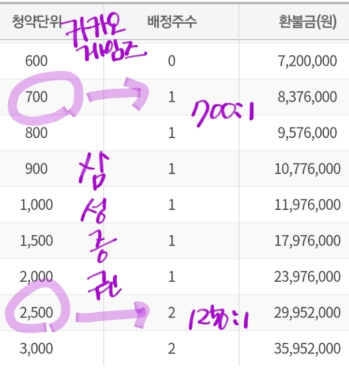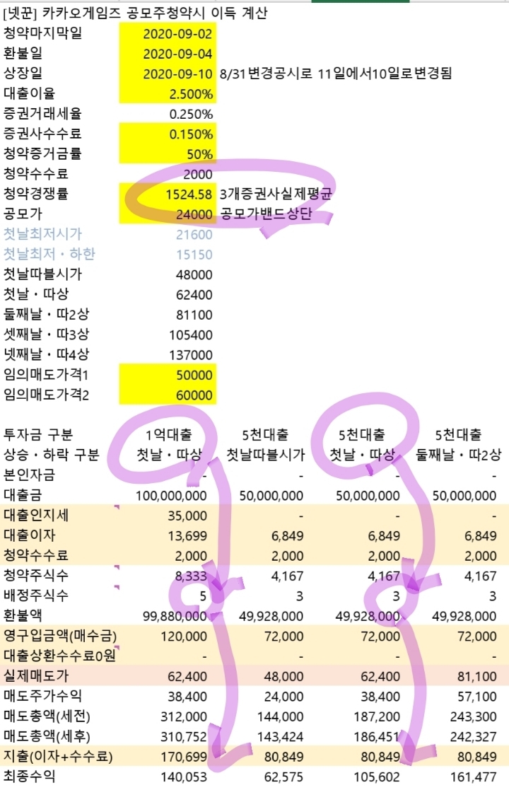1억에 5주 배정되어 결국 이익금이 적은..