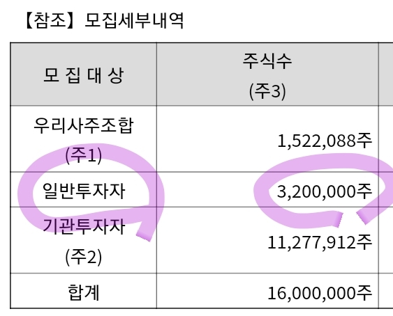총 배정주식수 1600만주 -> 오류이유: 기관물량 안뺐네요.