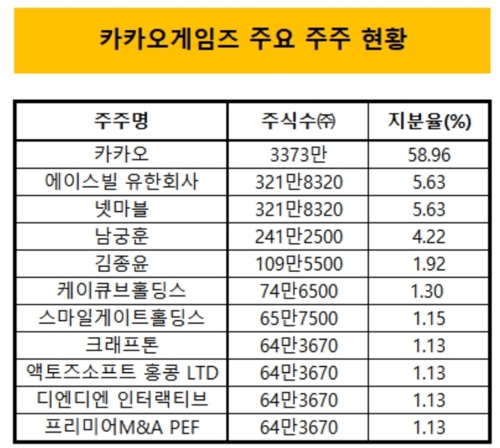 ㆍ주요주주: 최대주주외에 카카오(58.96%), 텐센트(5.63%), 넷마블(5.63%) 보유중