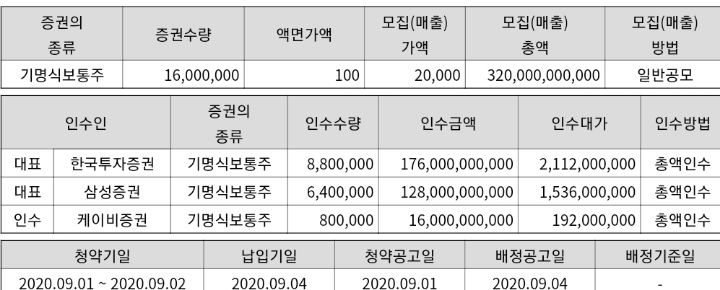 ㆍ공모청약일: 2020-9-1 ~ 2020-9-2
