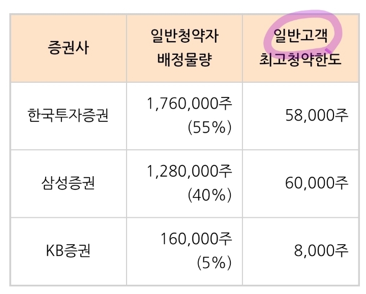 ● 증권사별 최대 청약한도
