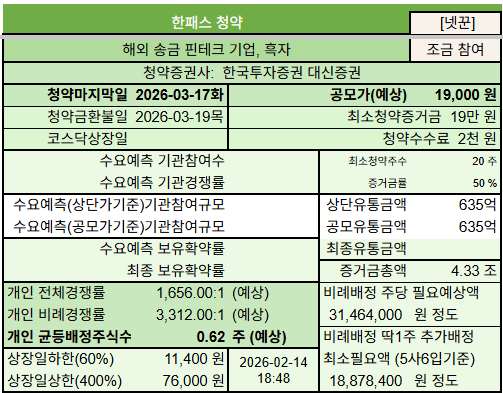 외환 해외 송금 전문 핀테크 기업 #한패스 공모주청약 정보입니다.