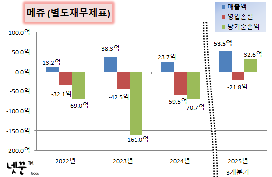 | 당기순손익 | 32.6억 | -70.7억 | -161.0억 | -69.0억 |