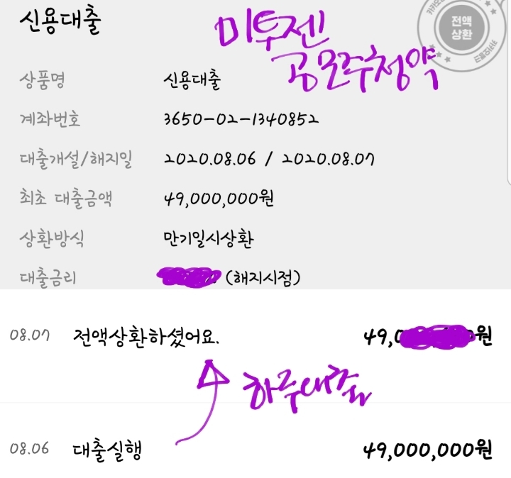 ● 카카오뱅크 하루대출하고 갚음.