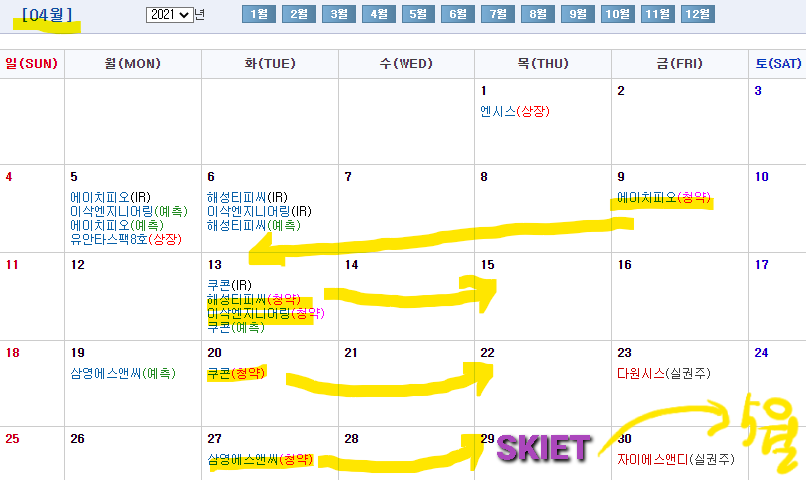 | SKIET (에스케이아이이테크놀로지) 공모주청약 (2021-04-28~04-29) (1) | 2021.04.01 |