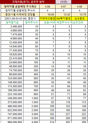 | 청약자별 균등배정 주식계산 | 4.08 | 4.57 | 4.58 |