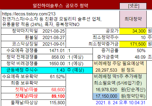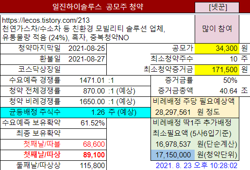 ㆍ2021년 8월 공모주청약 정보: https://lecos.tistory.com/216