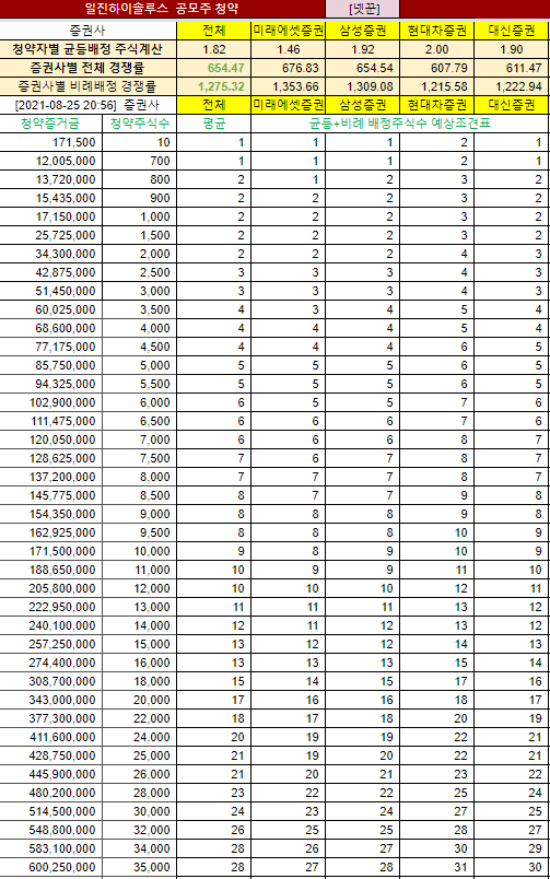 | 청약자별 균등배정 주식계산 | 1.09 | 1.09 | 1.51 | 1.36 | |