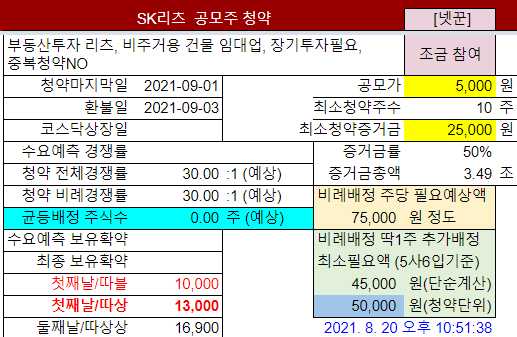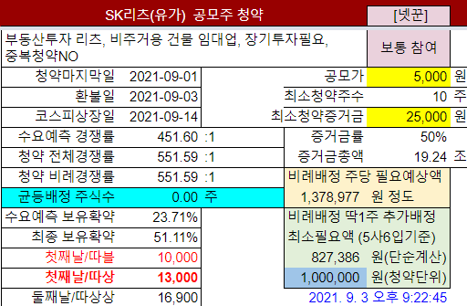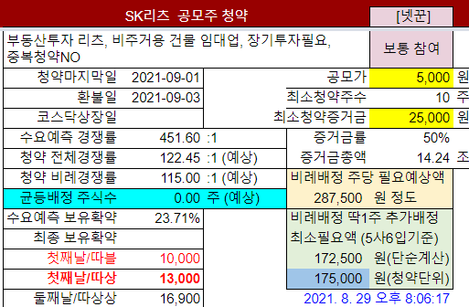 @2021-08-28: #SK리츠 청약증권사 오류수정