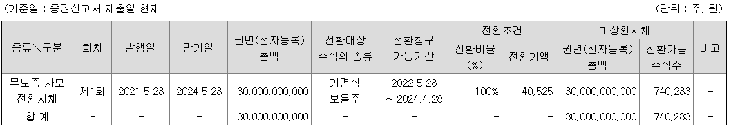 전환사채는 이자만 받고 주식으로 전환하지않을 수 도 있어서 좀 더 조사해봤습니다. 다른 공시를 찾아보니 취득가액=전환가액이었고 2024년 만기라 주식 전환할 가능성이 크지는 않아보이네요.