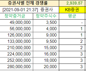 | 증권사별 전체 경쟁률 | 340.00 | 310.00 | 330.00 | 310.00 |