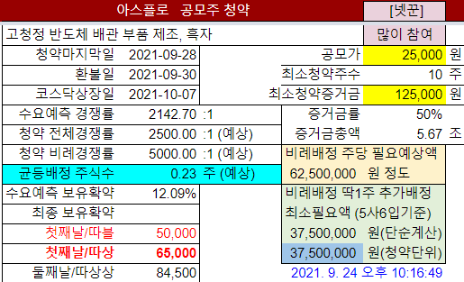 @2021-09-24 넷꾼 청약참여도 올림: "보통"→"많이", #아스플로 청약일정 겹쳐서 예상 경쟁률 조정