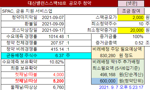 @2021-09-07: #대신밸런스스팩10호 상장일 변경 (9월16일→9월17일)