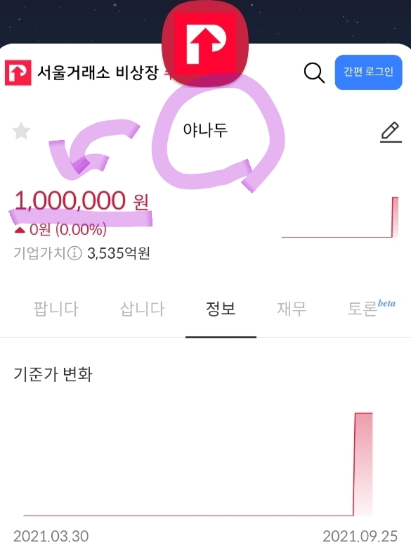 증권플러스 비상장 앱에서는 보이지 않으며,