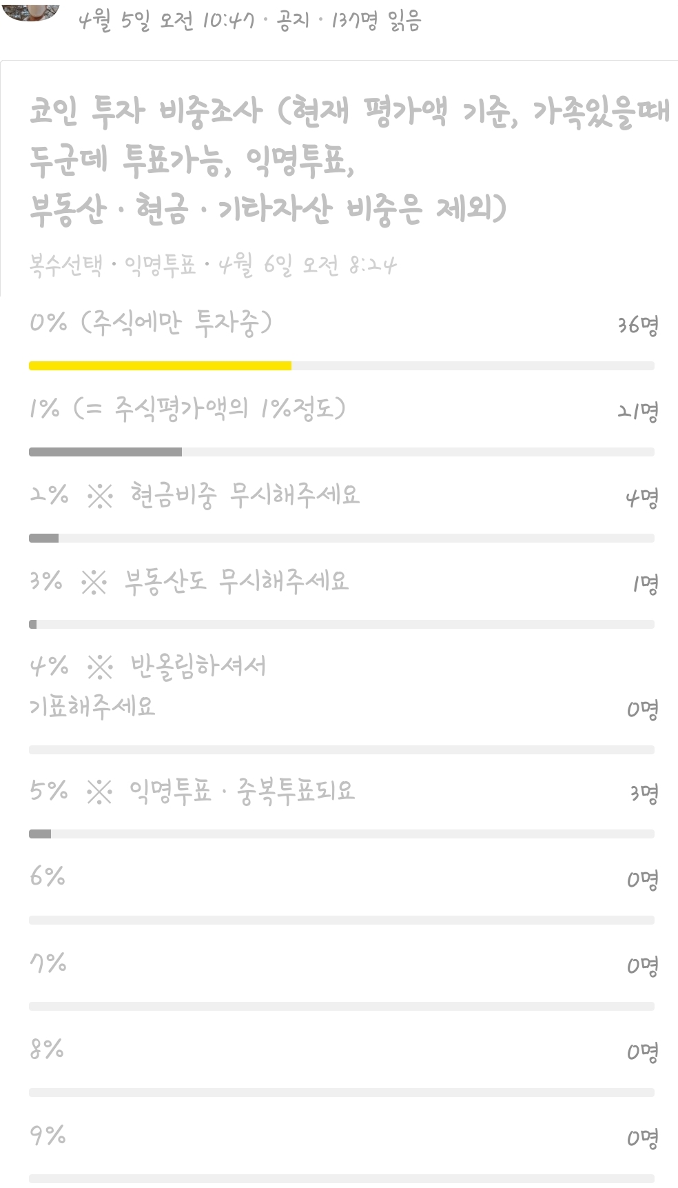 2021년4월6일 기준 암호화폐 (코인) 투자 비중 조사