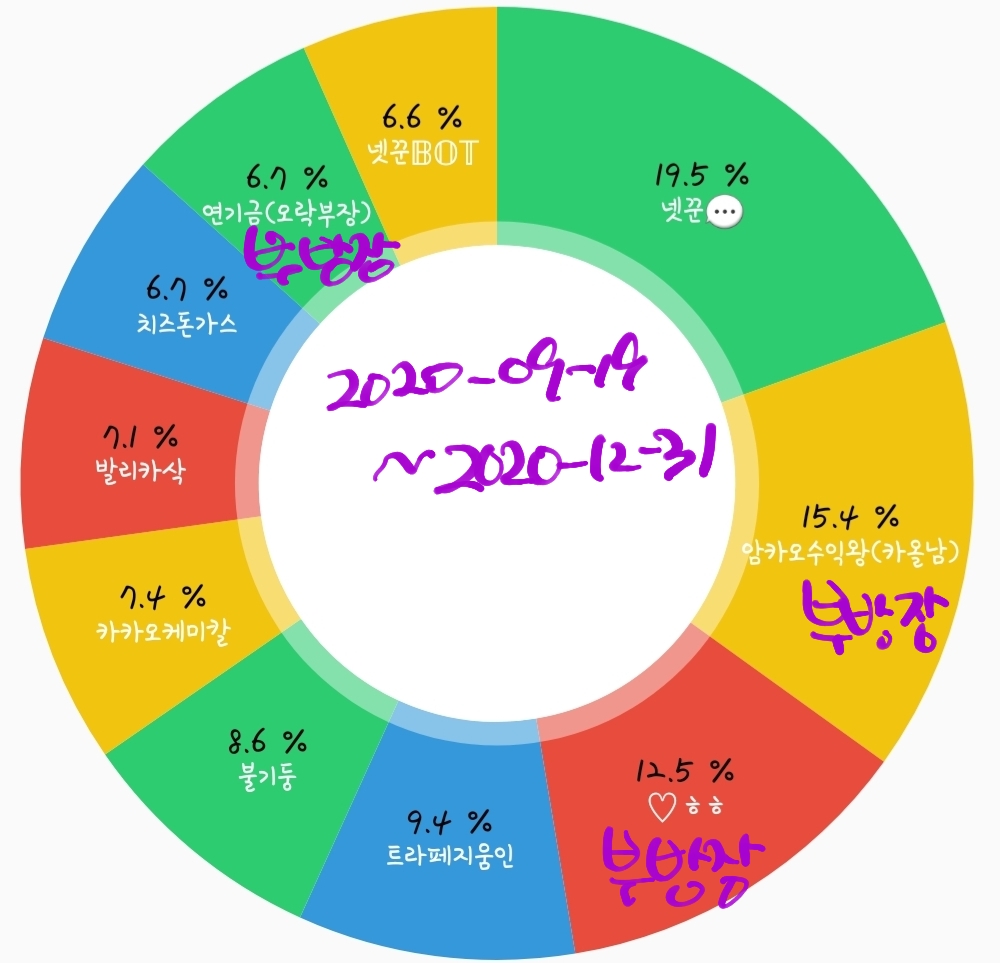 2020-09-19 ~ 2020-12-31 채팅점유율과 부방장님들
