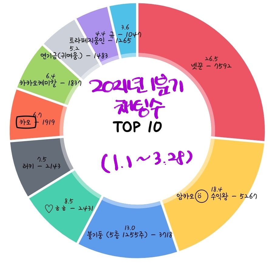 2020-01-01 ~ 2021-03-28 채팅점유율과 부방장님들