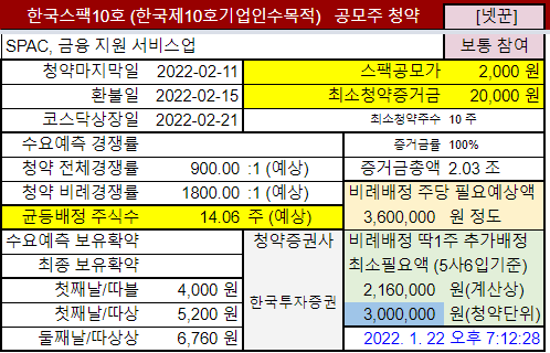 @2022-02-07 오류정정 : 최소청약주식수 50주. 최소청약증거금 10만원