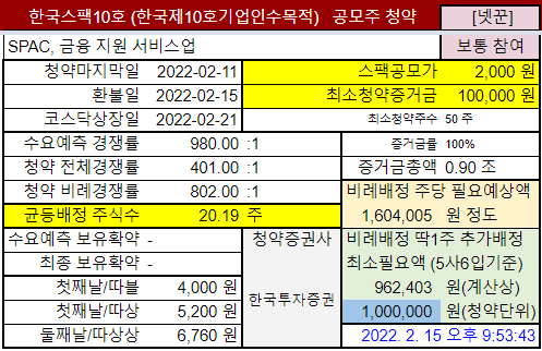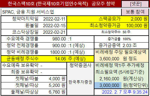 | P | 한국투자증권 | SPAC, 금융 지원 서비스업 | ||||