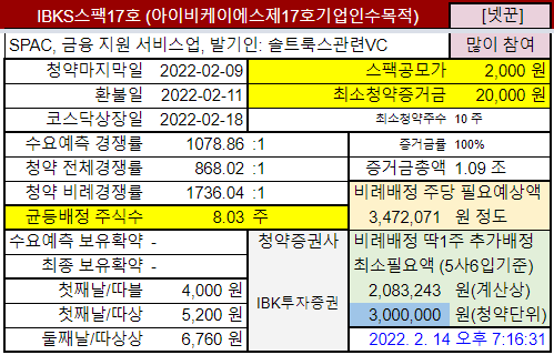 @2022-01-30 #IBKS스팩17호 발기인이 #솔트룩스 관련 VC라서 넷꾼 참여도 올림: "보통"→"많이"